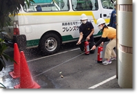 下馬2丁目北町会と合同で火災を想定した避難訓練を実施しました。避難訓練後、ライフタワー体験や下馬2丁目北町会防災部長のご指導の下、消火器体験訓練などを行いました。